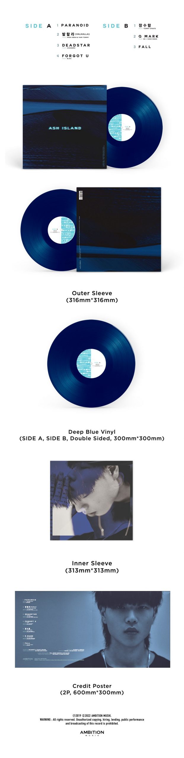 Date de sortie (en Corée) : 24 mars 2025 - Édition vinyle de ASH (2019), le 1er album du chanteur / rappeur Ash Island.
